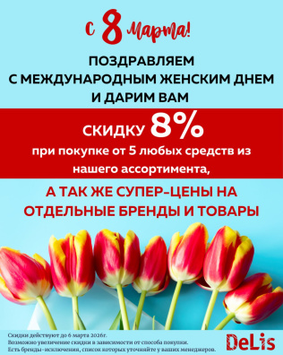 Дарим скидку 8% при покупке от 5 любых средств до 6 марта